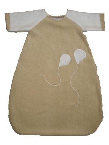 Gigoteuse en tissu polaire avec manches longues, fermeture sur le côté avec une fermeture éclair qui descend jusqu'au trois-quart gauche, fermeture par des boutons pression au niveau de la poitrine.Idéal pour la saison fraiche, polaire toute douce et confortable.Coloris beige motif 2 ballons de baudruche blanc