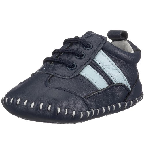 Leder-Schuh mit Streifen 18/19 marine/hellblau (107721)
