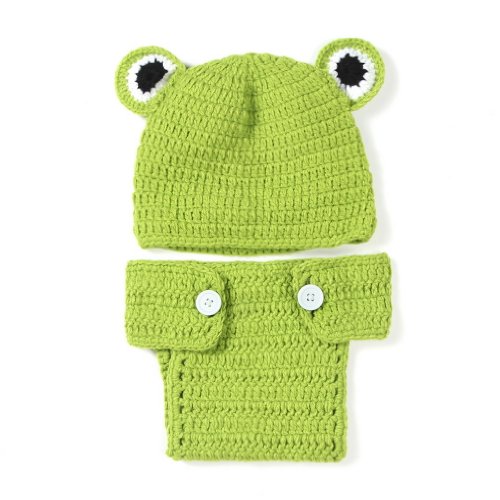 Description de l'article pourY-BOA - Déguisement Bébé Costume Mignon - Grenouille Verte - Chapeau Bonnet Crochet- 3~6 Mois - Photographie